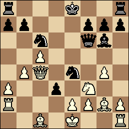 1. d4 Nf6 2. c4 e6 3. Nc3 Bb4 4. Qc2 d5 5. a3 Bxc3+ 6. Qxc3 Ne4 7. Qc2 c5 8. dxc5 Nc6 9. cxd5 exd5 10. Nf3 Bf5 11. b4 d4 12. g4 Bg6 13. Qc4 d3 14. Bg2 Qf6 15. Ra2 [Diagramm] Ne5 16. Qb5 Nc6 17. Qc4 Ne5 18. Qb5 Nc6 1/2-1/2
