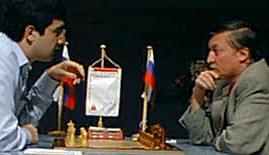 Der Russe Anatoli Karpow wählt die Russische Verteidigung in der entscheidenden Partie (siehe nebenstehendes Foto) mit Peter. Nach 12.c3 hat Peter 2 Minuten verbraucht, während der Weltmeister bereits fast eine Stunde nachdachte (an seinem 12. Zug).